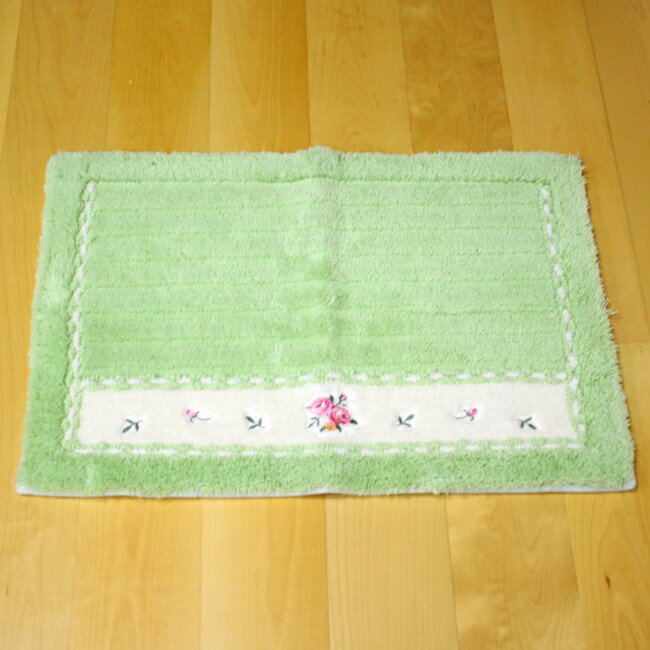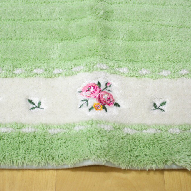 刺繍入りで洗える滑り止め機能付きのローズ柄が可愛らしいカラフルバスマットです。