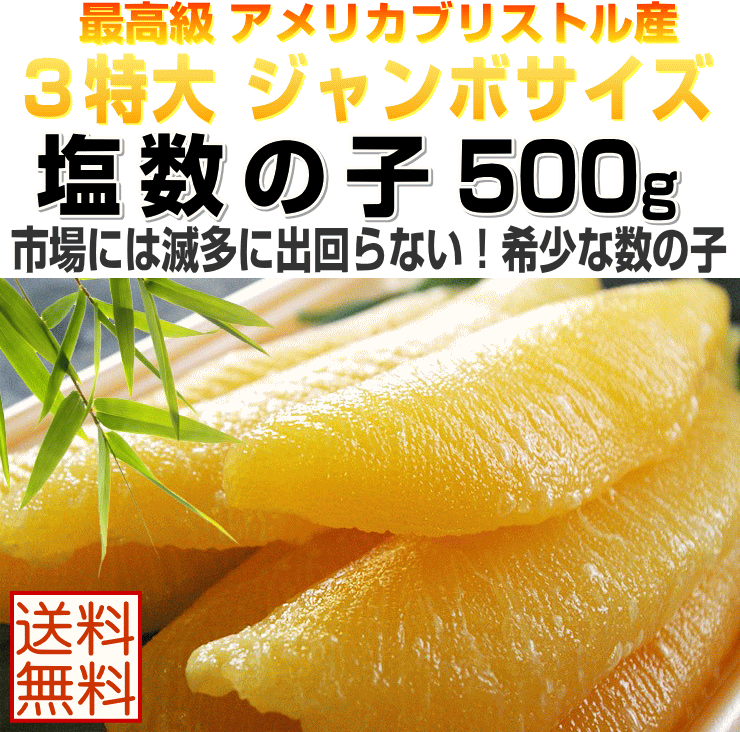 売り尽くし★最高級 3特大 塩数の子 500g アメリカブリストル産 1本が60g〜80g ジャンボサイズ 送料無料(本州)、北海道は450円、四国は300円、九州は450円、沖縄は1960円の追加送料がお客様負担となります。